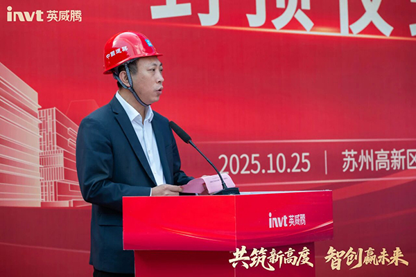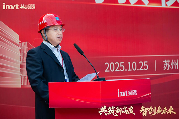 最后,苏州高新区党工委委员、管委会副主任李志军在致辞中表示,英威腾长三角总部三期项目建设稳步推进,为高新区产业升级注入了强劲动力。希望以此次项目为契机,进一步推动高新区智能制造产业集群发展,助力打造新质生产力的重要增长极,用创新引领发展、用制造制胜未来。