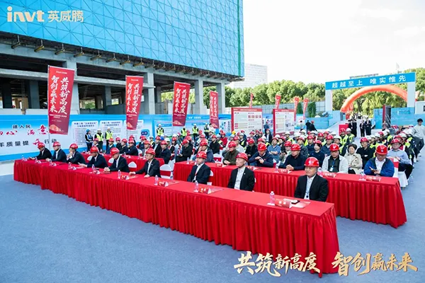 苏州高新区党工委副书记、虎丘区区长吴琦,区党工委委员、管委会副主任李志军,区管委会副主任、科技城党工委书记杨亮,科技城党工委副书记、管委会主任叶其中等政府领导出席活动。英威腾董事长黄申力、总裁田华臣、副总裁张清、苏州英威腾电力电子有限公司总经理印小勇,以及中建二局二公司总经理张术军等项目建设单位代表共同出席仪式,对项目建设的顺利推进表示肯定。