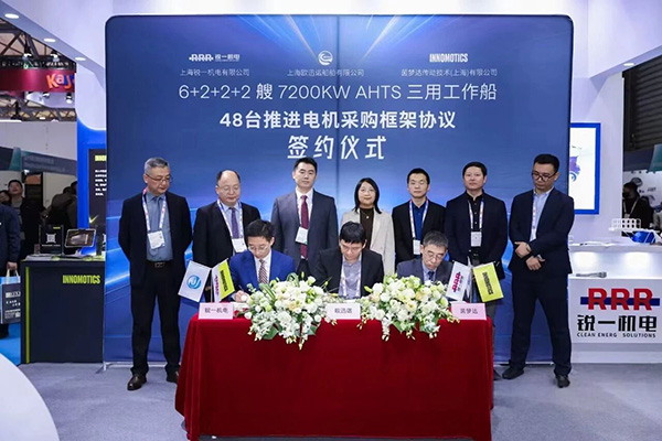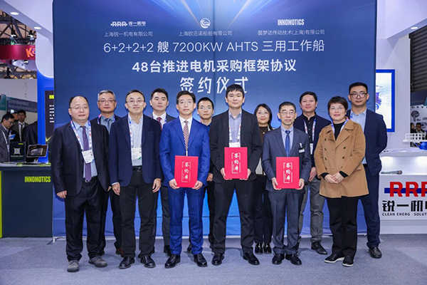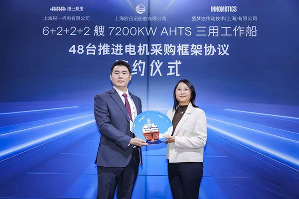 茵梦达与上海欧迅诺船舶有限公司、上海锐一机电有限公司正式签署48台推进电机供货框架协议。三方将围绕工业自动化驱动产品展开长期合作,携手打造船舶领域创新解决方案。