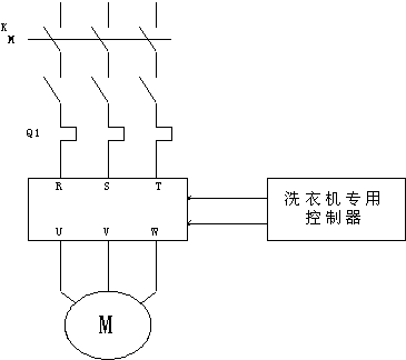 洗涤频率设置为F0.02的数字设定,均布、中脱、高脱由Xi端子设定。由电脑控制各段速的工作时间,X端子的命令由洗衣机控制器发出。