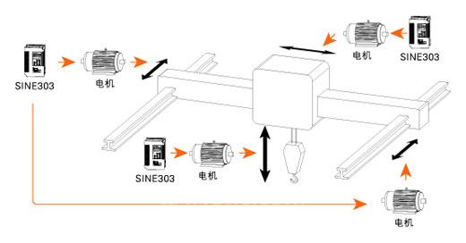 行车电机用变频器驱动,主回路无触点控制、无极调速,起动电流小,无冲击,无振动,噪声小,起升、行走定位准确,生产效率高,维护费用低。