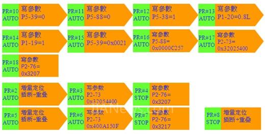 对于伺服程序的规划,按照设备工艺要求,本系统主要包三个功能块:1.凸轮输入输出模块;2.色标对位模块;3.同步修正模块。