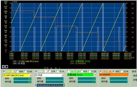 A.E-CAM TABLE IN(X POS) B. DI状态 C.0X10000055 (对位误差率)