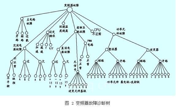 故障树诊断法要求先列出系统或设备可能出现的故障,再将引起每个故障发生的直接原因包括硬件、环境、人为因素等,用适当的逻辑把他们与故障连接起来,构成一棵故障诊断树,如图2所示。诊断时按树由下而上逐级检查,直到把故障找出为止。在故障较多时,此法诊断方便快捷。从每个枝的基部开始检查,直到找出故障的性质、原因、部位为止。当找到的一个故障排除后,故障现象仍存在,说明还有另外故障存在,必需再检查试验,直到故障全部查清。