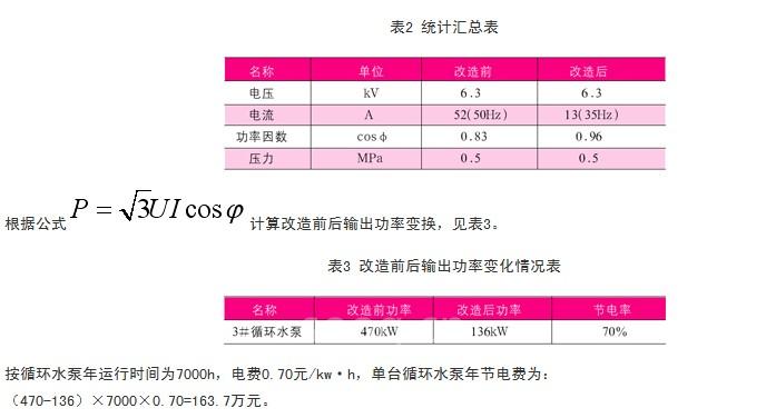 我公司动力车间有1#、2#、3#高压循环水泵,正常运行时“二用一备”,3台电机均为直接工频启动,启动电流大,既影响设备寿命又对电网产生较大冲击。昼夜循环水温度变化较大,对循环水量要做出相应的调节。但原设备工频定速运行时,只能靠调节阀门的开度来调节循环水量的大小,通过人为改变管网的阻力,增加管网损耗来调节水量,造成相当大的一部分能量浪费在阀门上,致使电费居高不下。使用阀门调节流量,不仅不能够经济运行,而且增加了工人的工作量,调节不及时还会造成管网压力过高或过低,流量过大或过小,影响生产工艺及设备的安全运行。为了降低生产经济成本,提高工艺精度及工作效率,迫切需要对其中1台循环水泵进行调速节能降耗改造。