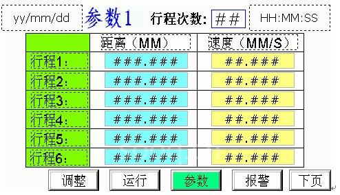 首先在参数页设置好相关行程参数,如行程次数,距离和速度,最低速度可达6um/sec。此处如图5所示: