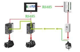 1#开槽伺服与2#开槽伺服为同步工作,1#伺服接收印刷出料电机编码器的脉冲后,使用Bypass方式输出给2#伺服,达到双轴同动效果。