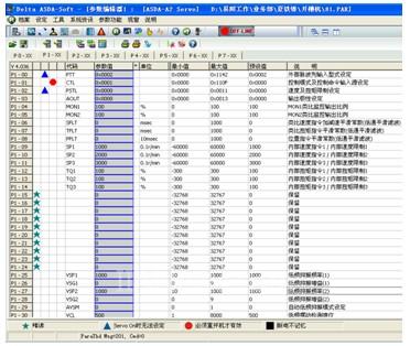 (2)伺服工作模式为PR模式,需要在参数编辑器中设定伺服的工作模式、电子齿轮比等参数。