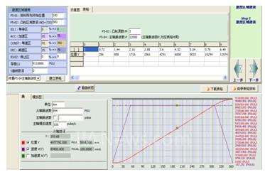 凸轮轴为同步带传动,通过P1-44 及P1-45的分别设置为128、10,主动编码器为2500线AB差动输入,则主动轴每旋转一周给出10000个脉波(四倍频后):根据A2PC软件提供的速度建表功能,规划好加速区、等速区、减速区及停止区的比例,可以得到图5的凸轮曲线。