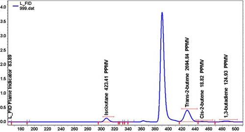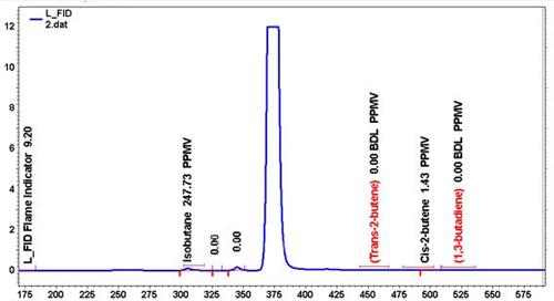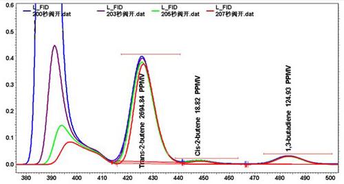 3区域内不出峰,Tra-2-butene、Cis-2-butene、1,3-butadiene示值为零。