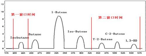 第一窗口时间用于分析Isobutane,如果窗口靠后无用组分Butane或者1-Butene将进入色谱柱,对分析和柱功能造成影响;