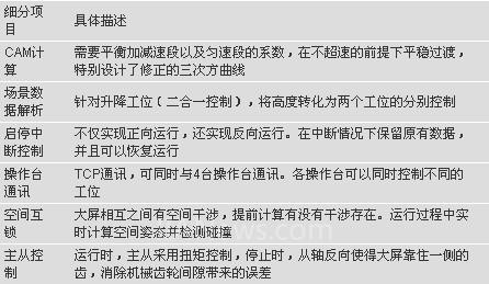 春晚舞台上的五块LED屏,由50 组SINAMICS S120驱动系统以及贝得电机带动,SIMOTION D455运动控制系统需要完成50根轴的高精度同步。SIMOTION D455控制系统分为装台模式和场景模式两种控制方式,装台模式下可自行选择工位操控设备;场景模式下设备则按预设的时间节点数据运行。以此,LED屏可完成横移、升降、前后摆动、左右摆动和270度运动旋转,并确保误差角度控制在±0.1度之内。在舞台控制领域,单屏运动条件下的精度把握还较为简单,但春晚导演组根据实际的彩排效果又提出了更高要求:让五块“天屏”协同呼应,并继续保持高频、快速的动态性能。