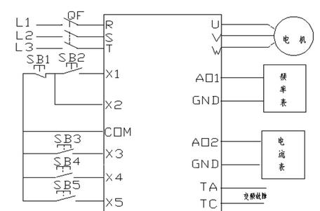 对立式水力碎浆机原有系统存在的问题,采用变频器软启动和无极调速功能对原来控制系统进行优化。本系统选用阿尔法6000系列变频器,具有多种保护功能,低频启动力矩大,启动平滑,响应快等特点。系统配置电路图如下: