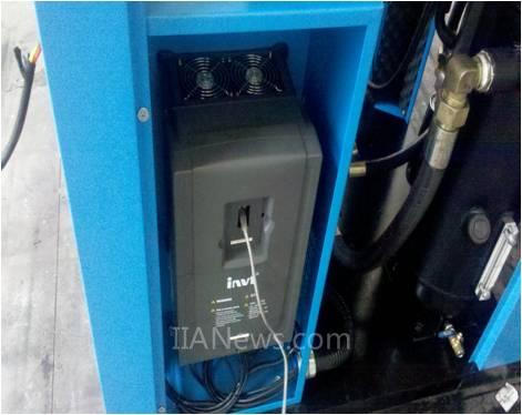 配置永磁同步电机的空压机必需采用具有永磁同步控制功能的英威腾GD300变频器来驱动,把永磁同步电机的性能发挥到极致,效率高,同时为避免电压压降引起的系统不称定,变频器还具备有弱磁功能,输出电压高,输入电源380伏的情况下,输出电压最高达到360伏左右,大大减少了设备运行电流。
