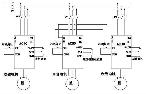 放卷、牵引变频器的参数设置比较简单,只需要按照接线图把相关参数设置好就可以了。