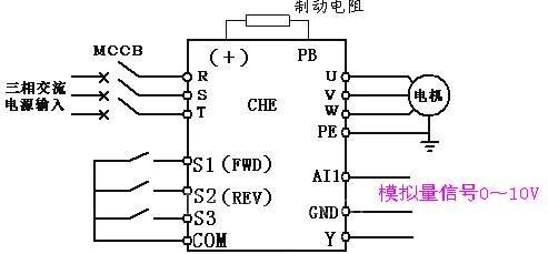 (3)频率源为模拟量设定(电脑控制板输出0~10VDC),只需要从AI1口输入频率指令;