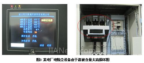 此外,谐波电压产生的电压尖峰使得厂用电部分的风机、水泵等电机类负载存在匝间击穿隐患、电除尘、变频器等设备出现输入整流管击穿现象,影响厂用电系统的安全运行;谐波的大量存在还会影响厂内无线通讯系统,导监测数据丢失或错误,使得智能监控设备不能有效持续运行。