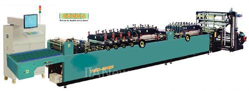 众所周知,制袋机设备是应用关系到食品、化工、医药等众多国计民生的重大产业,在满足我们食用物资供应的背后,是庞大的制袋机包装制袋机市场;形成了广东粤东地区、江苏无锡地区、浙江温州海宁地区、陕西西安地区等几个较大规模的软包装设备生产基础。软包装制袋机设备是集机、电、光、气为一体,高度机械化、自动化的设备。【如下图(1)所示】下图所示制袋机是双伺服驱动,正常工作120个袋子每分钟;最快可以达到180个袋子每分钟。