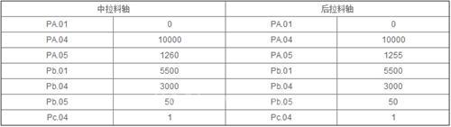 注:因为制袋机使用的基本都是塑料薄膜为材料,物体比较软,为了使后面一段材料处于紧绷状态,后拉料轴电子齿轮比分母PA.05适当小于中拉料轴电子齿轮比分母PA.05。