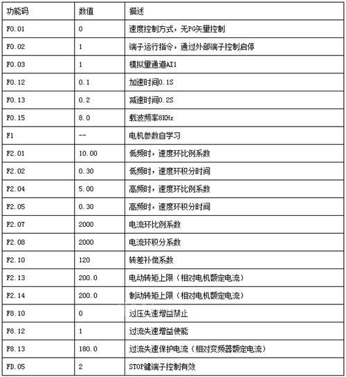 矢量控制主要参数表:
