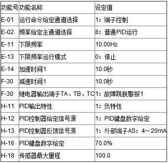变频器具体参数设置如下表: