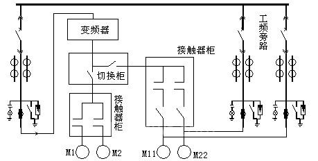 4.矿井主扇风机都是一用一备。为了节省投资,可以使用一台变频器实现一拖二功能,或者使用两台变频器分别控制两台主扇风机。如果使用一台变频器实现一拖二,应该考虑配置工频旁路系统,以防变频系统出现故障而导致矿井停风事故。