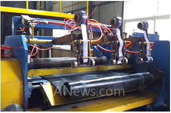最后,切刀对油毛毡进行切割,然后收料辊再次启动,继续完成剩余油毛毡的收卷,这一过程使用脉冲跟随控制,然后完成油毛毡打包。