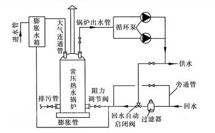 锅炉房循环泵与热网循环泵的入口通过均压管相连,均压管与相邻管道同口径。当热网循环泵运行流量大于锅炉房循环泵运行流量时,热网回水经均压管后,一部分流向锅炉房循环泵入口,一部分流向热网循环泵入口与锅炉供水相混合;当热网循环泵运行流量小于锅炉房循环泵运行流量时,热网回水在均压管与锅炉部分供水混合后,全部流向锅炉房循环泵入口。不难看出,对于不同的运行工况,通过改变均压管中的水流方向,就能自动实现二级循环泵不同循环流量的协调与均衡。