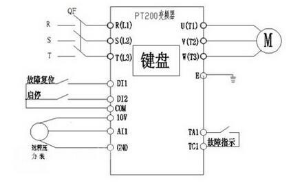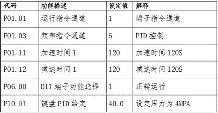 变频器由外部端子进行启动,操作简便。采用变频器内部PID控制,可以实现闭环控制,根据管道压力自动调节电机的转速从而改变流量的大小,从而达到智能化、自动化。