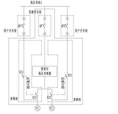 变频故障时,断开变频开关柜QF,闭合K11和K21、断开K12、K22,系统恢复原有运行方式工频运行;