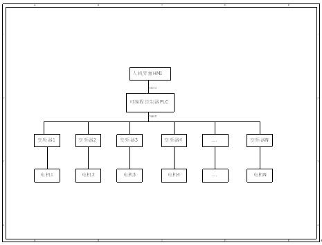 由图1的结构框图可以看出,系统由一台人机界面(HMI)、一台可编程控制器(PLC)和多台变频器(VFD)及电机(MOTOR)构成。