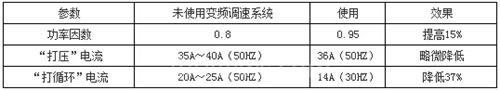 根据与以往未使用变频调速系统的水压机比较表格如下: