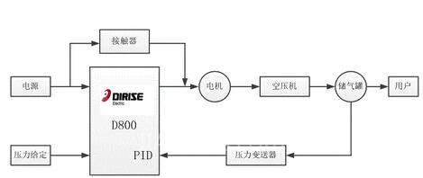 空气压缩机是用来使气体增加压力,以利于输送并提高气体的压力能,从而满足生产工艺或动力设备需要的一种专用机械,在陶瓷、玻璃、玩具、制衣、机械制造、塑料等多个行业中普遍应用。传统的活塞式压缩机靠压力继电器进行启停控制,压缩电机一般采用直接启动或传统的降压启动方式,启动存在较大的电气和机械冲击,且压缩机存在供气压力波动大、压缩电机启停频繁易损坏、噪声大、机件磨损快、维护量大、维护成本高等实际应用缺陷。