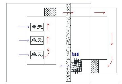 使用空调可以将室内温度降到理想的环境温度,空调通常采用的是下进上出风结构,这样与变频器侧进上出风在一定程度上形成了“抢风”的现象,变频器吸入的空气不完全是空调降温后的冷空气,空调的降温处理没有把变频器排出的热空气全部降温,导致了整个冷却系统的运行效率低下,能耗水平高。