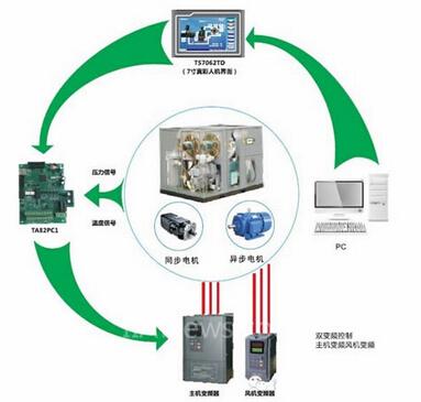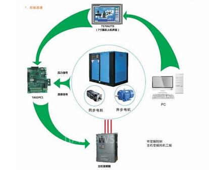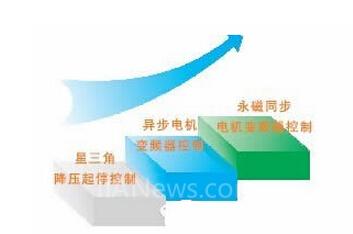 随着科技的不断进步,螺杆空压机的控制系统也不断革新换代,由起初的星三角降压起停控制→异步电机变频器控制→永磁同步电机变频器控制。