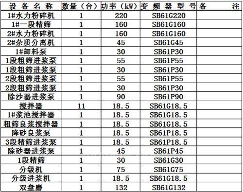 造纸生产线上的辅机很多,为节能基本都需要变频调速。实践已经证明,造纸辅机实施变频调速后,平均节能在12%,经济效益明显。浙江富阳某造纸厂生产线上的部分辅机设备如下表: