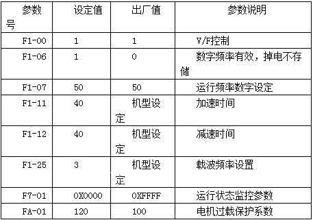 五、皮带输送机设备易驱变频器的参数设定如下: