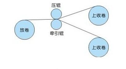 分切机的传统控制方案是利用一台大电机来来驱动收放卷的轴,在收放卷轴上加有磁粉离合器,通过调节磁粉离合器的电流来控制其所产生的阻力,来控制材料表面的张力。