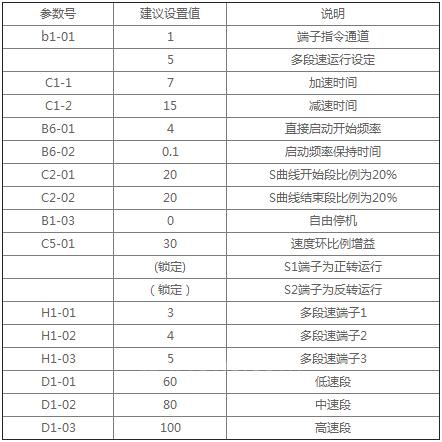 ◆ 变频器选用BD551,采用无PG闭环矢量控制模式,同等功率配置