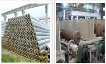 管桩离心成型,是利用离心力、重力、粘聚力、摩擦力使游动的混凝土经过低速、低中速、中速、高速四种速度,通过布料、二级过渡、密实三个阶段,实现水泥、石、沙混合浆在钢模中的有序排列;在经过抛落、充填、排挤过程中,渐次密实,外层形成密实混凝土层,中层砂浆层,内层水泥净浆层,然后经蒸养达到C80强度等级。