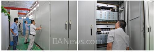 2014年10月6日,核工业西南物理研究院宣伟民、李华俊、胡浩天、王海兵、徐丽荣等五位专家莅临合康变频,对合康6kV/10000kW高压水冷变频调速系统进行设备出厂性能验收实验。 核工业西南物理研究院专家对HIVERT-Y6/1200(6kV/10000kW)高压水冷变频调速系统予以了充分肯定。