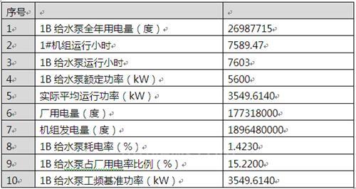 l B泵变频消耗总电量=(250MW负荷下)B泵变频器输入侧电流245A*额定电压6 kV *1.732*功率因数0.98*13年B泵运行时间7603h=18970391度;