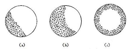 (c)如果筒体的转速很高,由于离心力的作用,以致使物料和钢球不再脱离筒壁,而随其一同旋转,这时钢球对物料已无撞击作用,研磨效率则更低。这种状态的最低转速称为临界转速。