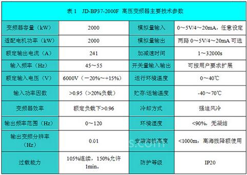 JD-BP37-2000F高压变频器技术参数如表1所示。