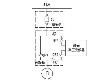 电机工频运行时,若需对变频器进行故障处理或维护,切记在QF1、QF2分闸状态下,将隔离刀闸K1和K2断开。