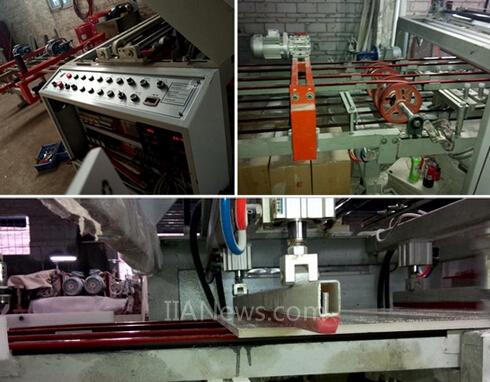 该陶瓷加工设备上用两台欧科PT200-0.75KW变频器产品,分别于不同的位置:一台作为输送速传输用,一台用于对磁砖的快速切割。