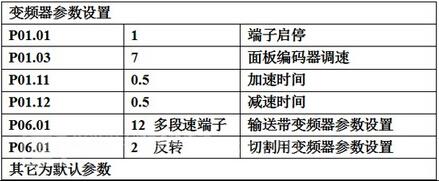 现场要求低频转矩大,稳速精度高,低频电机无抖动,动态响应快,加减速时间为0.5秒,外部端子控制启停,俩段速度调速,其中一段速度可根据加工工件不同略作调整,工作稳定可靠,提高生产效率。