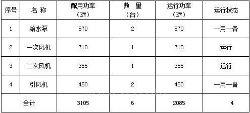 循环流化床燃煤锅炉机组运行方式下电机运行状态统计: