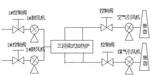 三段梁式加热炉鼓风机、煤气引风机、空气引风机,因电机和风机选型是以加热炉最大生产能力来选配的,由于实际生产能力没有达到最大生产能力长期以来均通过调节闸门、增加管网流体阻力的方法来实现流量控制,故系统效率低、功耗大、电能浪费严重。