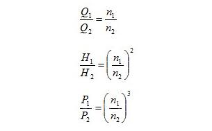 当改变风机的转速,其转速n、流量Q、压力(扬程)H、轴功率P的关系为: